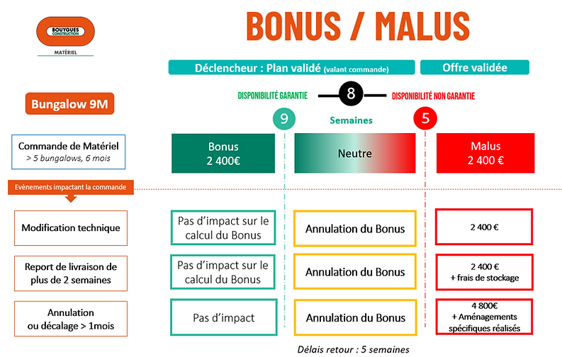 laquelle les bungalows rentrent en production. Ces modifications seront chiffrées et réalisées sur chantier avec une